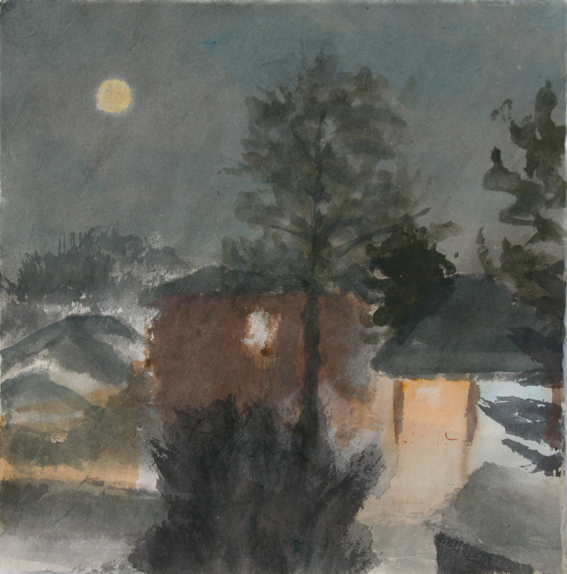 Being August it was easy to be outside. I was walking down the lane 9:30 pm, Friday, August 14 and there the moon peeked from behind the tree, barely over a house. Then on Saturday I noticed about the same time the moon a bit higher and more easterly. And on Sunday it was even more to the east.